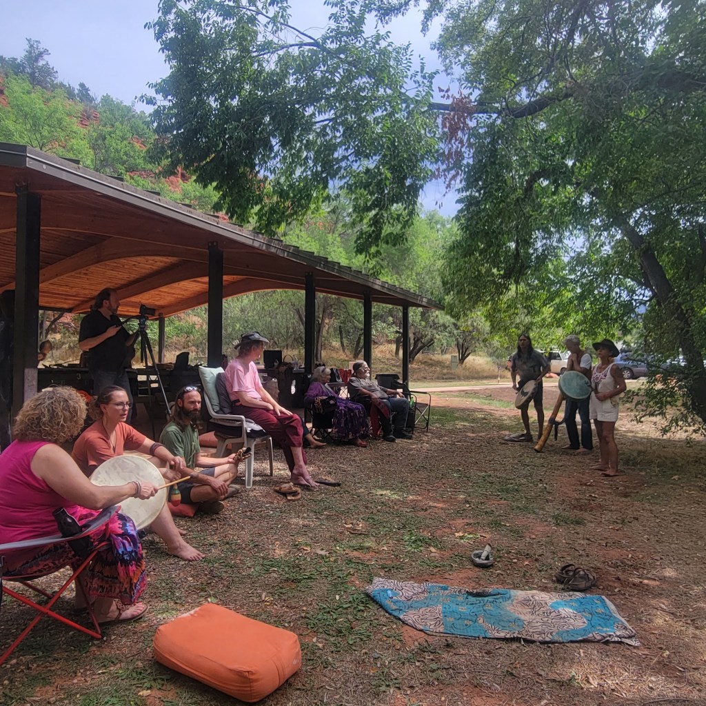 We drum in prayer for what spirit is guiding, for what the earth needs. The vibration of collective drumming reaches from earth to sky.